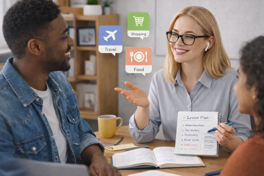 Conversation-focused sessions built around practical, everyday topics.